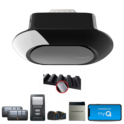 Overhead provides full-service garage door opener installation. Price includes install, 2 three-button remotes, wireless keypad, wall control & safety sensors. The Chamberlain B6713T Ultra-Quiet Wi-Fi Garage Door Opener with Corner to Corner Lighting™ and battery backup delivers smart MyQ control, power & visibility.